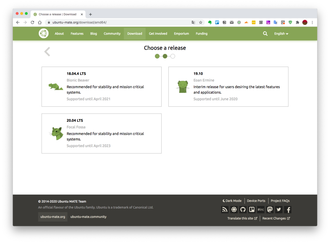 首先我們需要制作一個(gè)基于 debian 的 Linux 發(fā)行版 的 live USB,可以在不執行安裝的前提下通過(guò) U 盤(pán)運行系統,這里我挑選了我個(gè)人比較熟悉的 Ubuntu Mate 最新鏡像,這里我在其官網(wǎng)上下載了64 位的「ubuntu mate 20.04 LTS」鏡像。