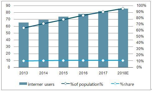 截止2018年6月,中國網(wǎng)民規模達到8.02億人,2018上半年新增網(wǎng)民數量為2968萬(wàn)人,與2017年相比增長(cháng)3.8%,互聯(lián)網(wǎng)普及率為57.7%。