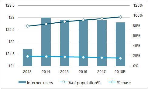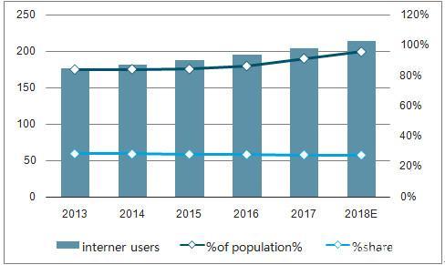 截止2018年6月,中國網(wǎng)民規模達到8.02億人,2018上半年新增網(wǎng)民數量為2968萬(wàn)人,與2017年相比增長(cháng)3.8%,互聯(lián)網(wǎng)普及率為57.7%。